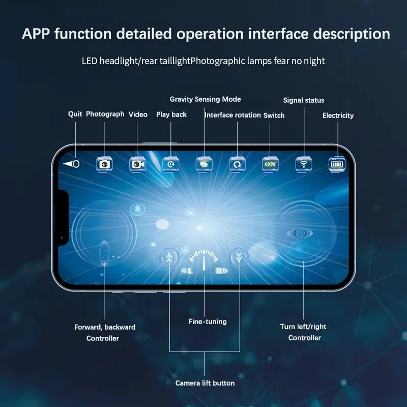 This remote control boat features a built-in camera for real-time underwater photography and video recording. The streamlined body glides smoothly through water with minimal resistance, making it easy to navigate pools, lakes, rivers, or even fish tanks. Control it with the included remote or switch to the mobile app for gravity-sensing motion control by tilting your phone. The six-channel system allows full directional movement including forward, backward, turning, and rotation. Photos and videos save directly to your device for easy sharing. Suitable for adults and kids ages 8 and up, this RC boat makes an exciting gift for anyone curious about exploring underwater environments.